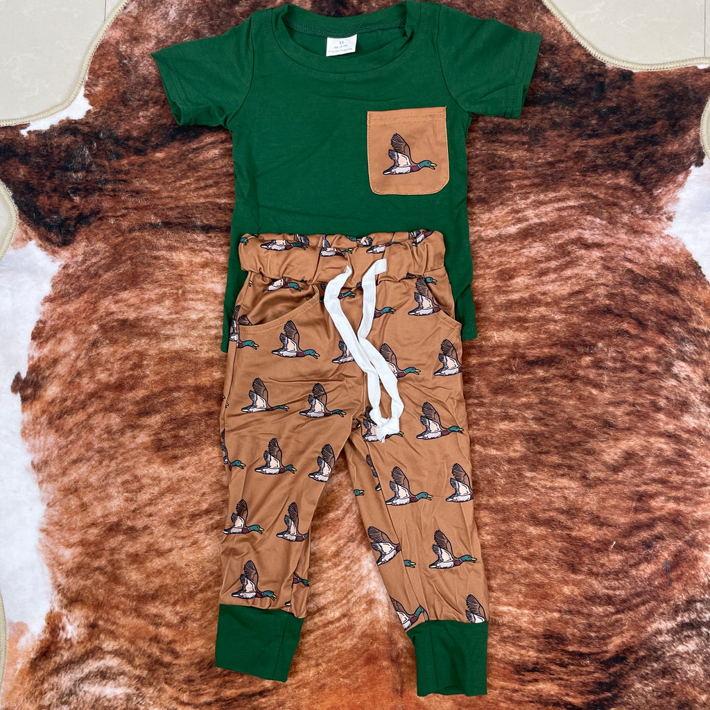 BSPO0155 RTS baby boy clothes green pocket mallard duck boy fall spring set