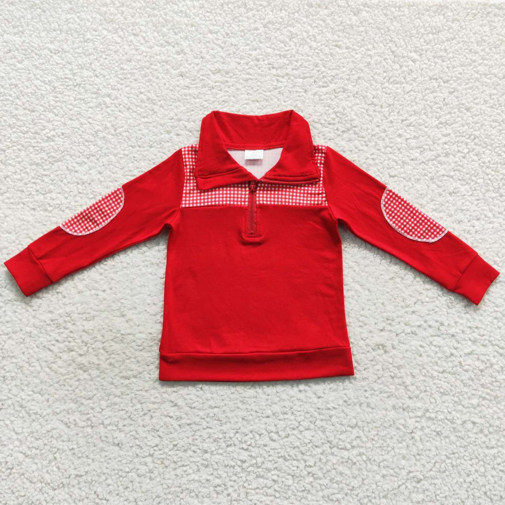 BT0291 toddler boy clothes red boy christmas shirt zipper boy winter top