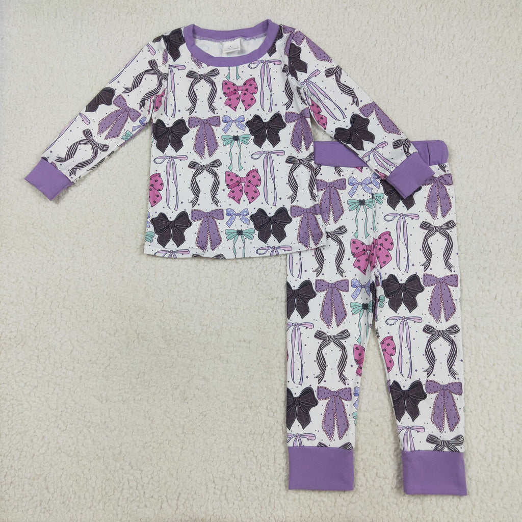 GLP2533 RTS girl clothes purple bows girl winter pajamas set