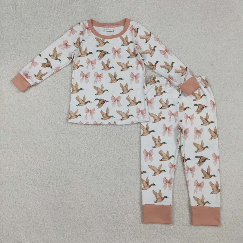 GLP2687 RTS girl clothes mallard print girl pajamas winter set