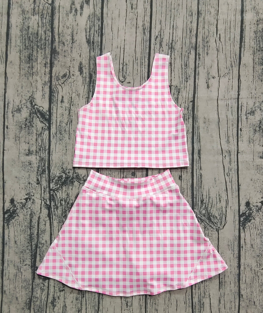 GSD0992 RTS baby girl clothes pink gingham swimsuit toddler girl summer outfits