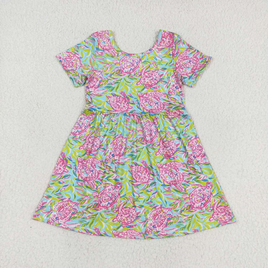 GSD1118 RTS toddler clothes green painting baby girl summer dress