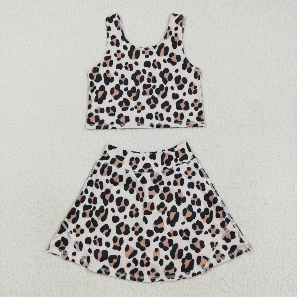 GSD2327 RTS toddler girl clothes leopard print girl summer set yoga clothes