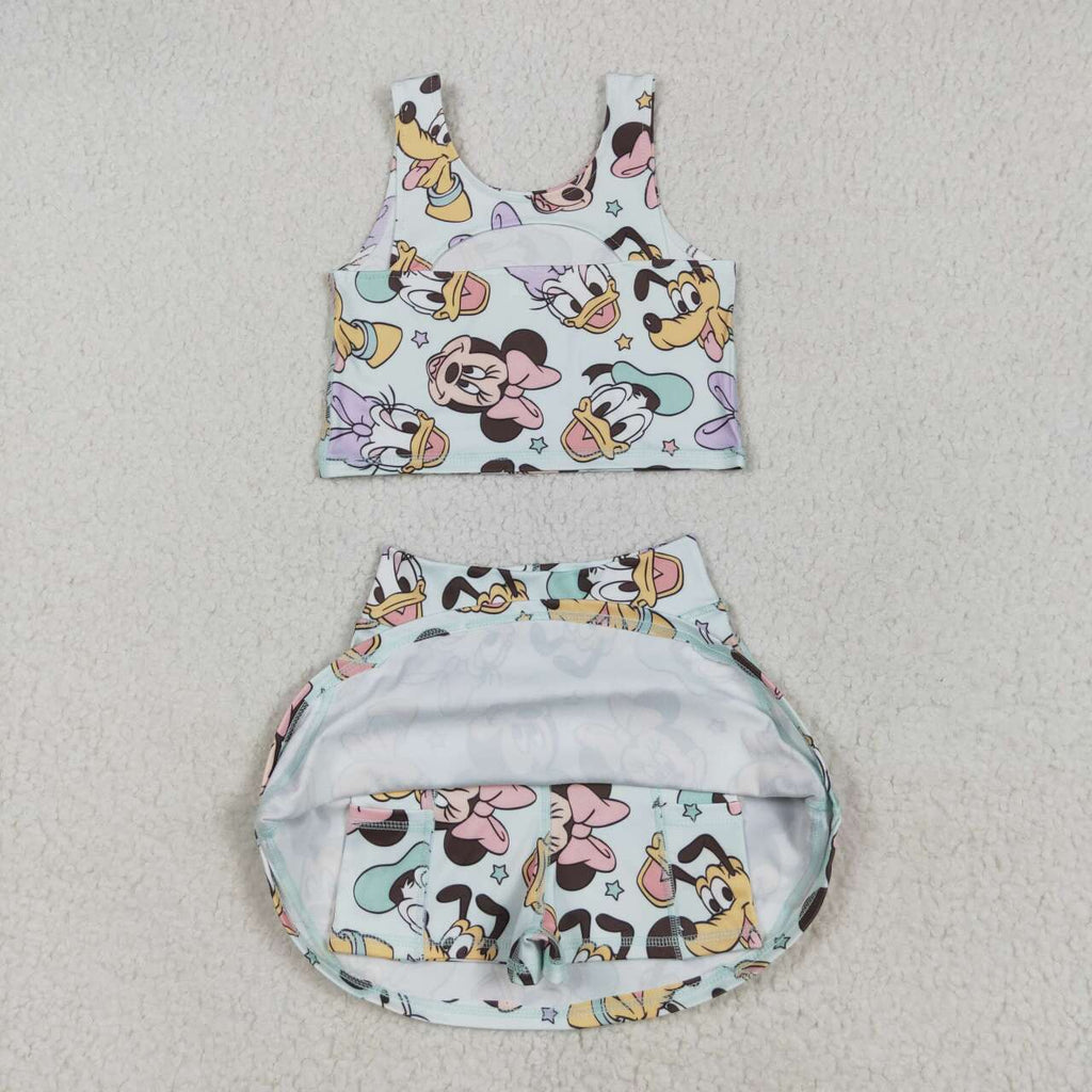 GSD2353 RTS toddler girl clothes cartoon mouse girl summer dress yoga clothes atheleric sports clothes
