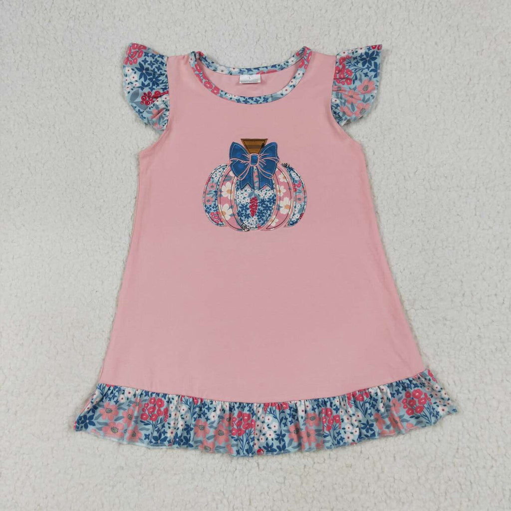 GSD2585 RTS toddler clothes pumpkin girl summer embroidery dress