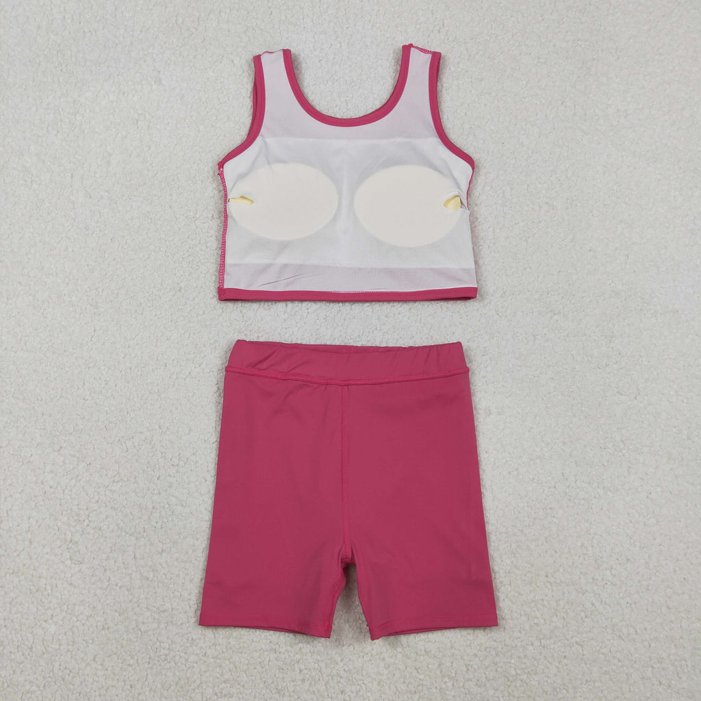 GSD2657 RTS toddler girl clothes hot pink girl summer set yoga clothes