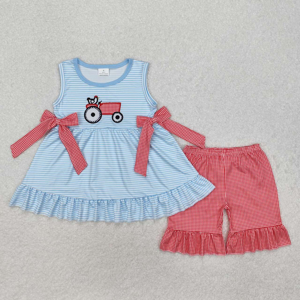 GSSO1728 RTS girl clothing chicken embroidery girl summer shorts set