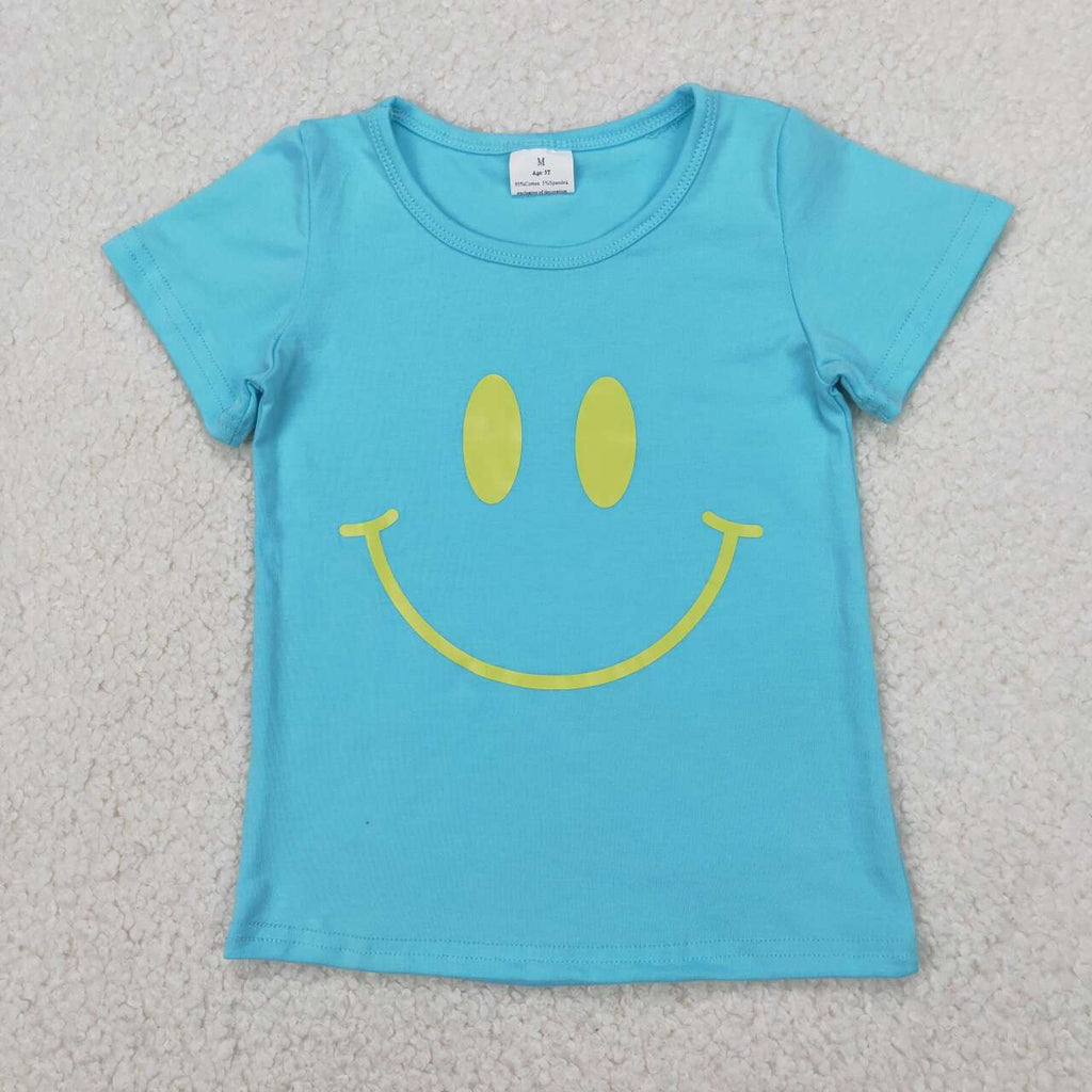 GT0960 RTS girl clothes blue smile girl summer top Tshirt