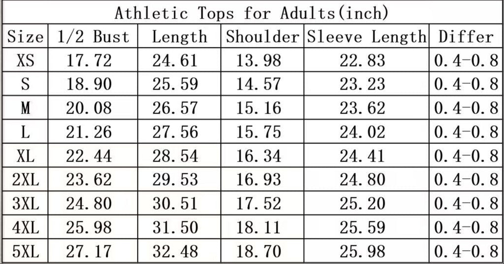 XS,S,M,L,XL,2XL,3XL,4XL,5XL