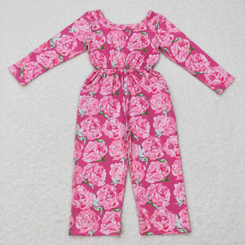 LR0715 toddler girl clothes pink rose floral girl winter jumpsuit winter romper