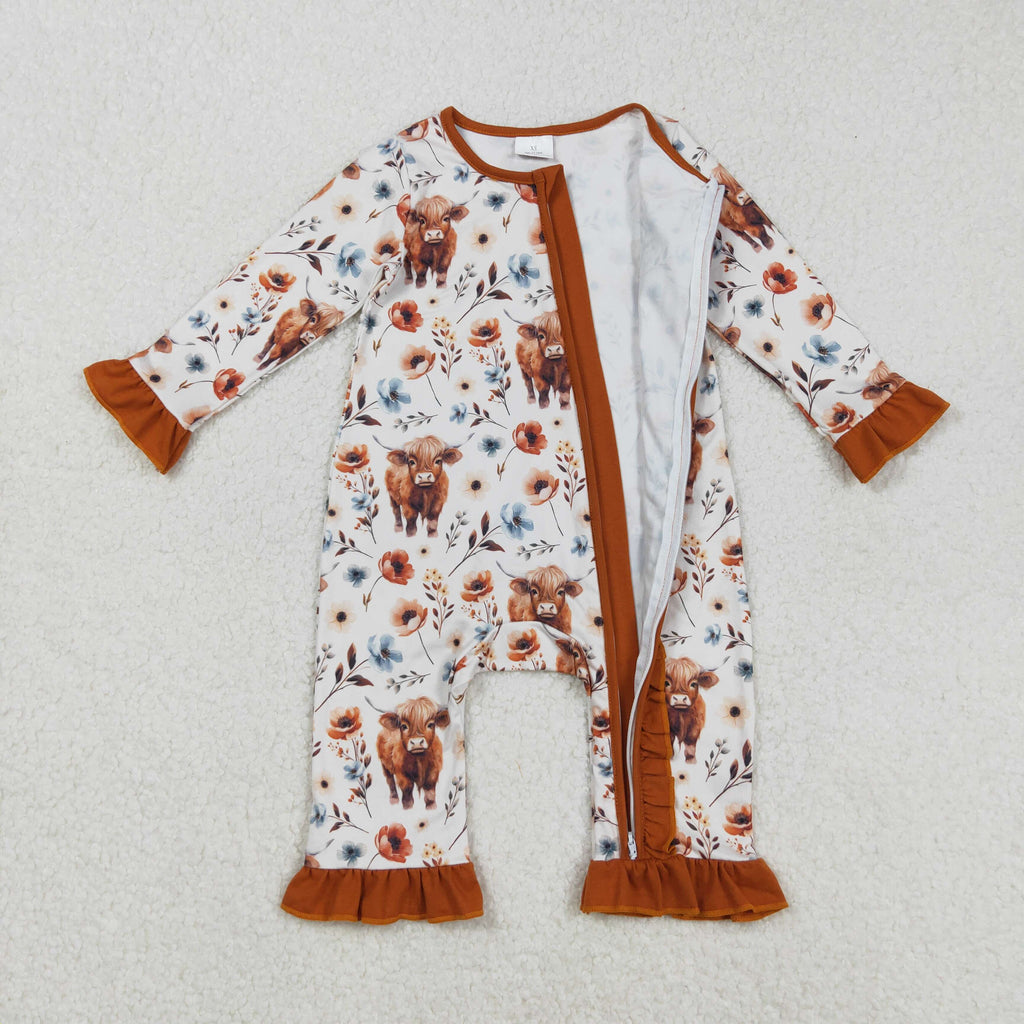 LR1624 RTS baby girl clothes highland cow toddler girl winter romper