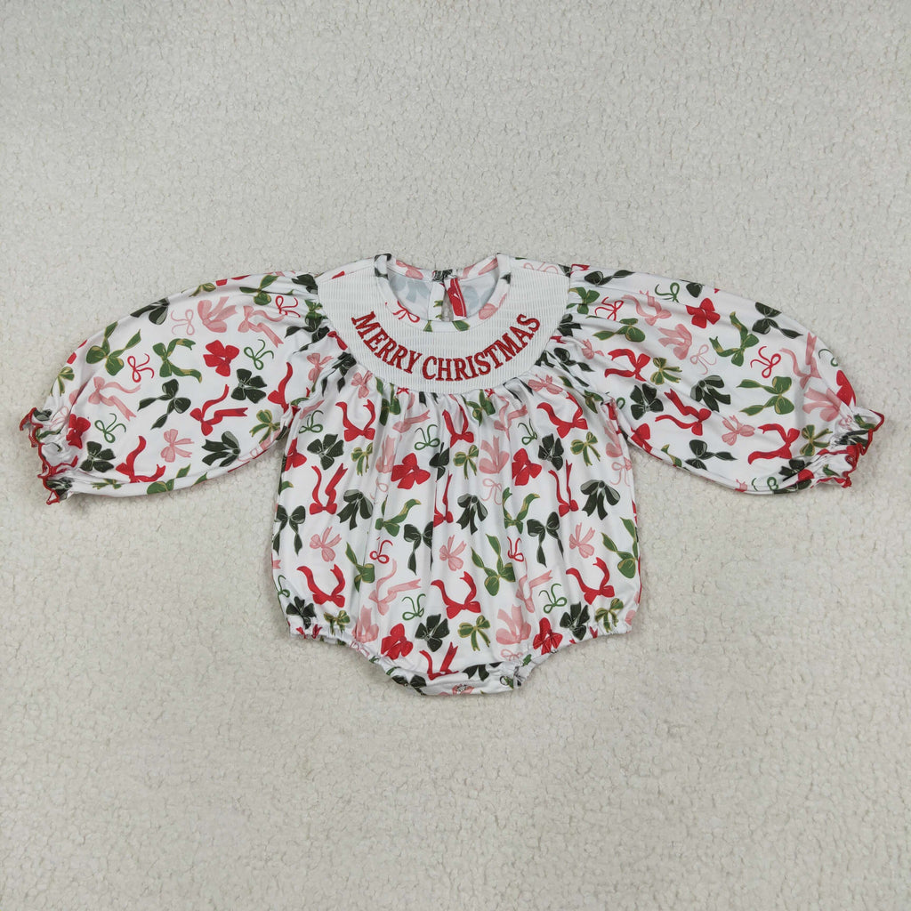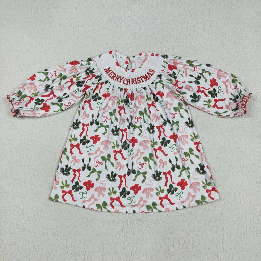 LR2276 RTS Girl Clothes Merry Christmas Dress Smock Bow Winter Bubble