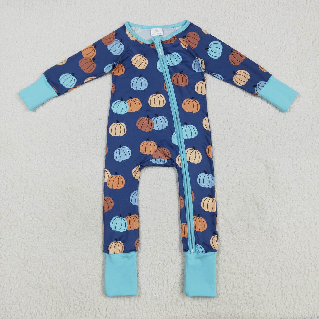 LR2364 RTS baby boy clothes pumpkin boy winter romper halloween romper
