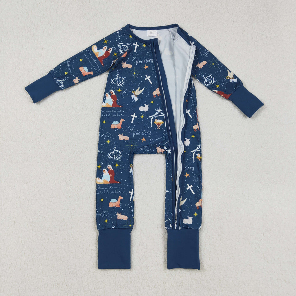 LR2504 RTS boy clothes jesus boy christmas winter zip romper