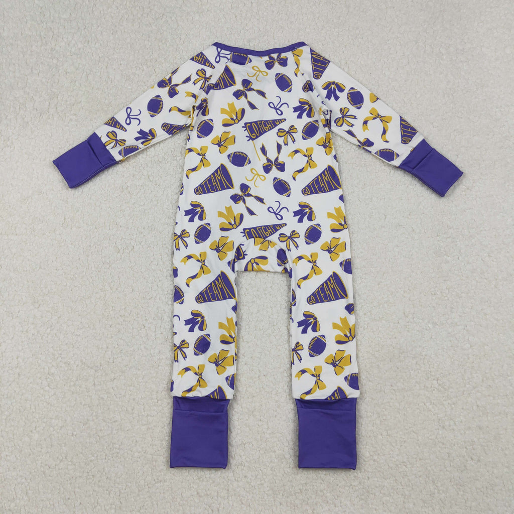 LR2513 RTS baby girl clothes purple go team girl winter romper zip romper