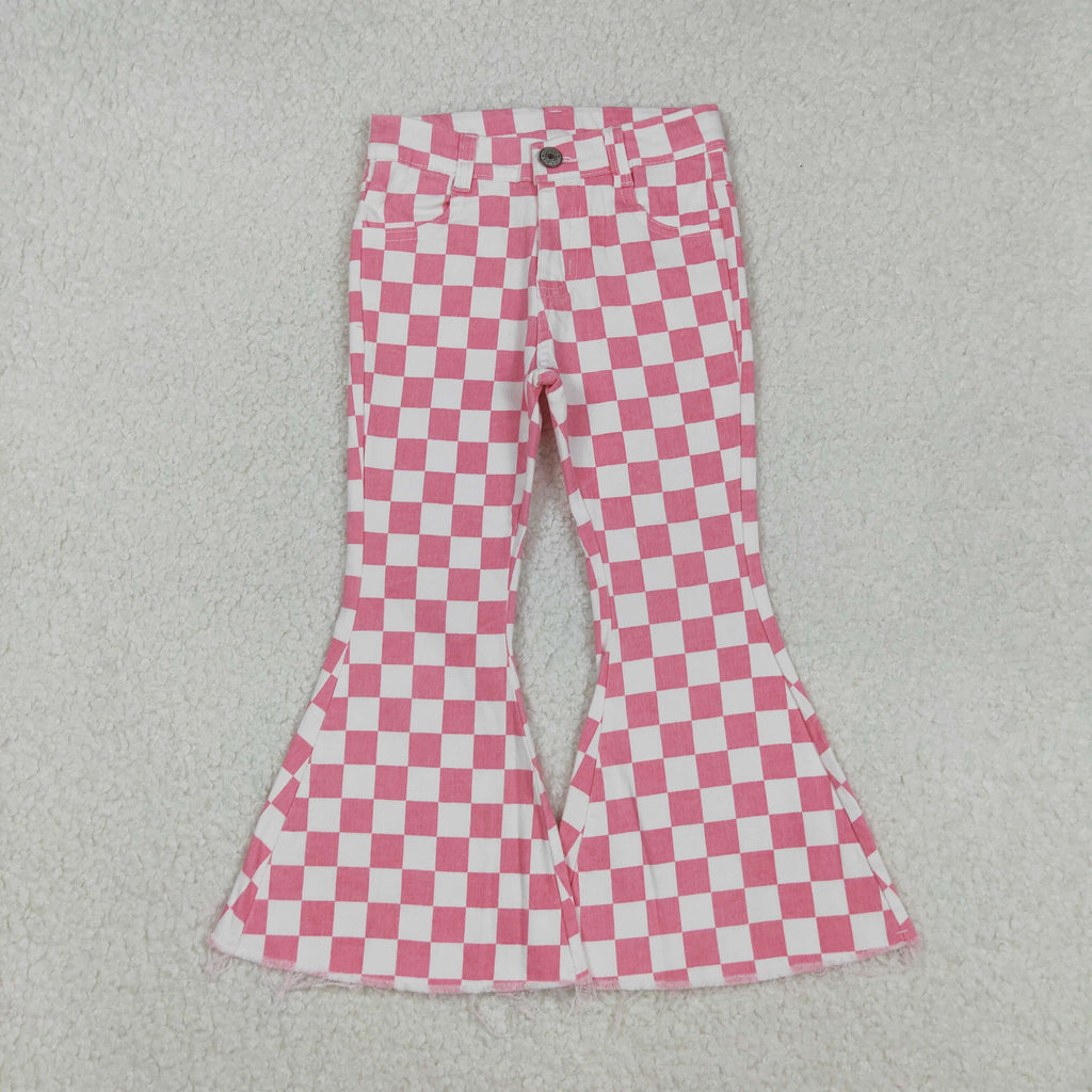 P0348 baby girl clothes girl jeans pink plaid toddler bell bottom jeans valentines day clothes