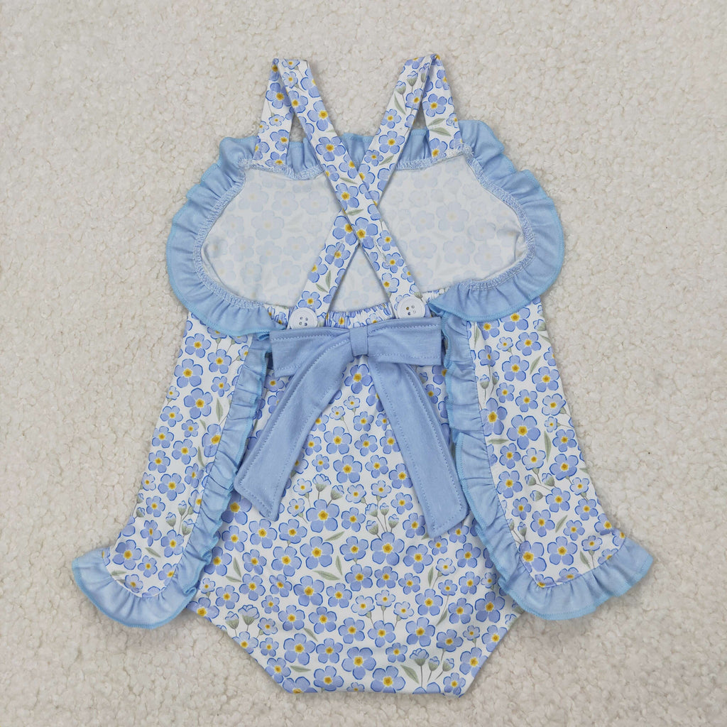 RTS girl summer matching clothes blue bow floral girl summer clothes girl outfit bubble