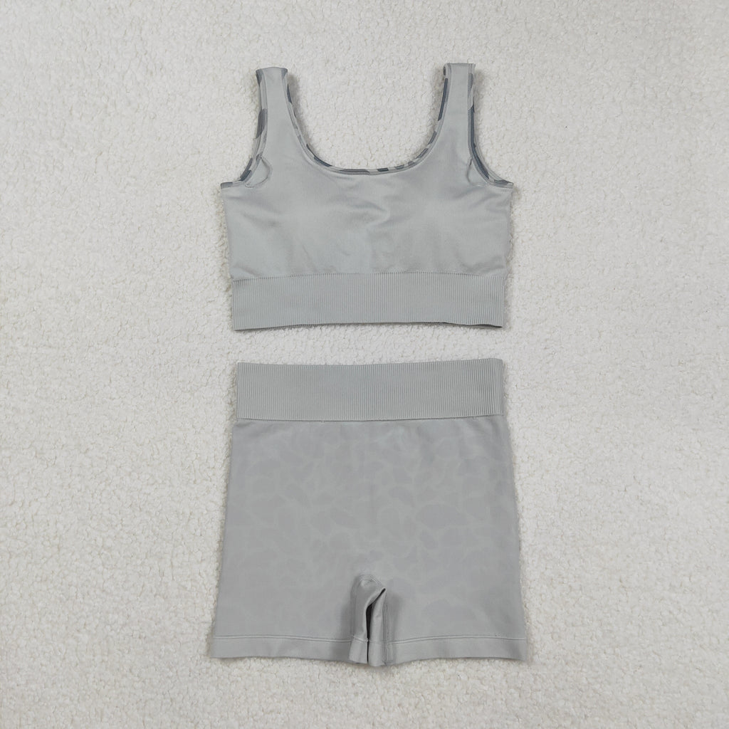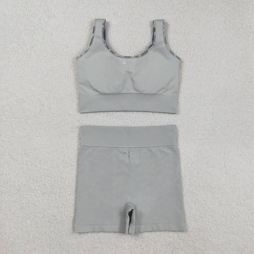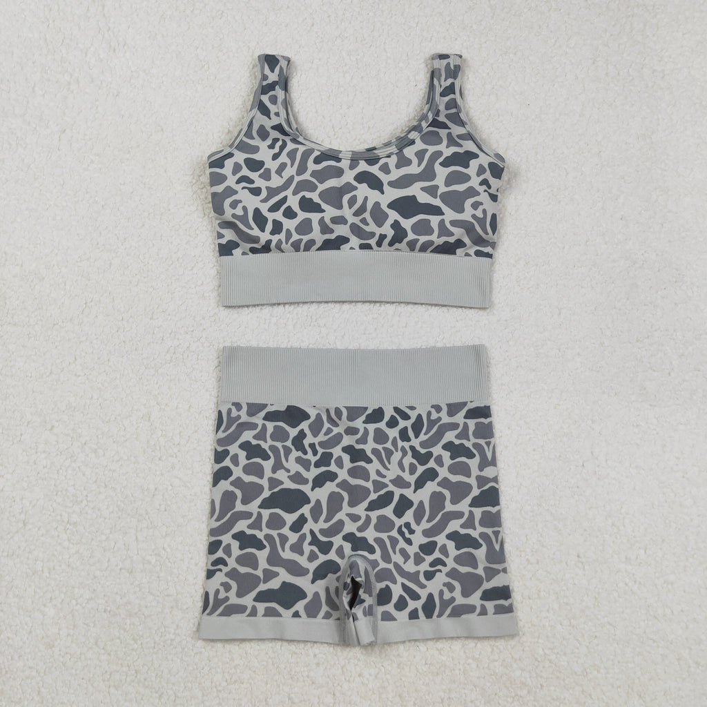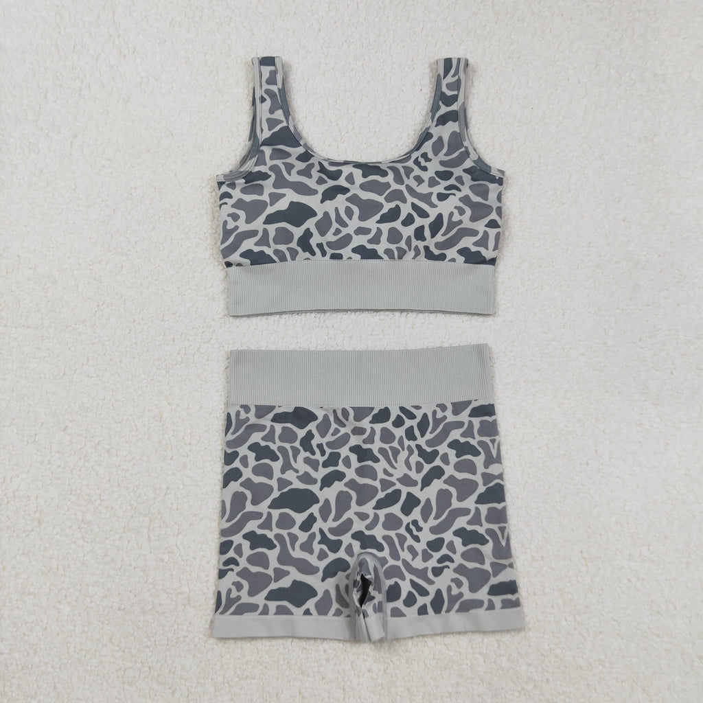 RTS GSSO2702 Adult women atheletic outfit 2pcs sports set grey camo