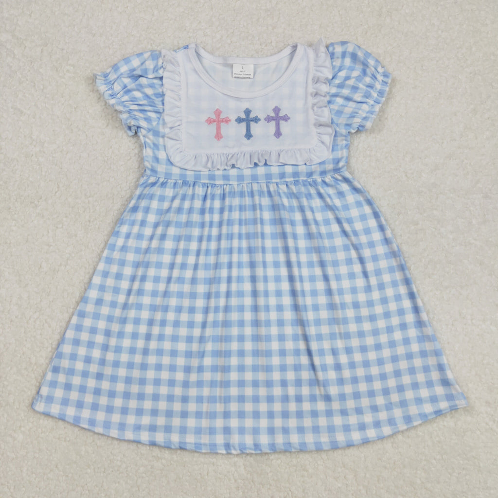 RTS kids summer matching clothes easter cross embroidery girl spring clothes
