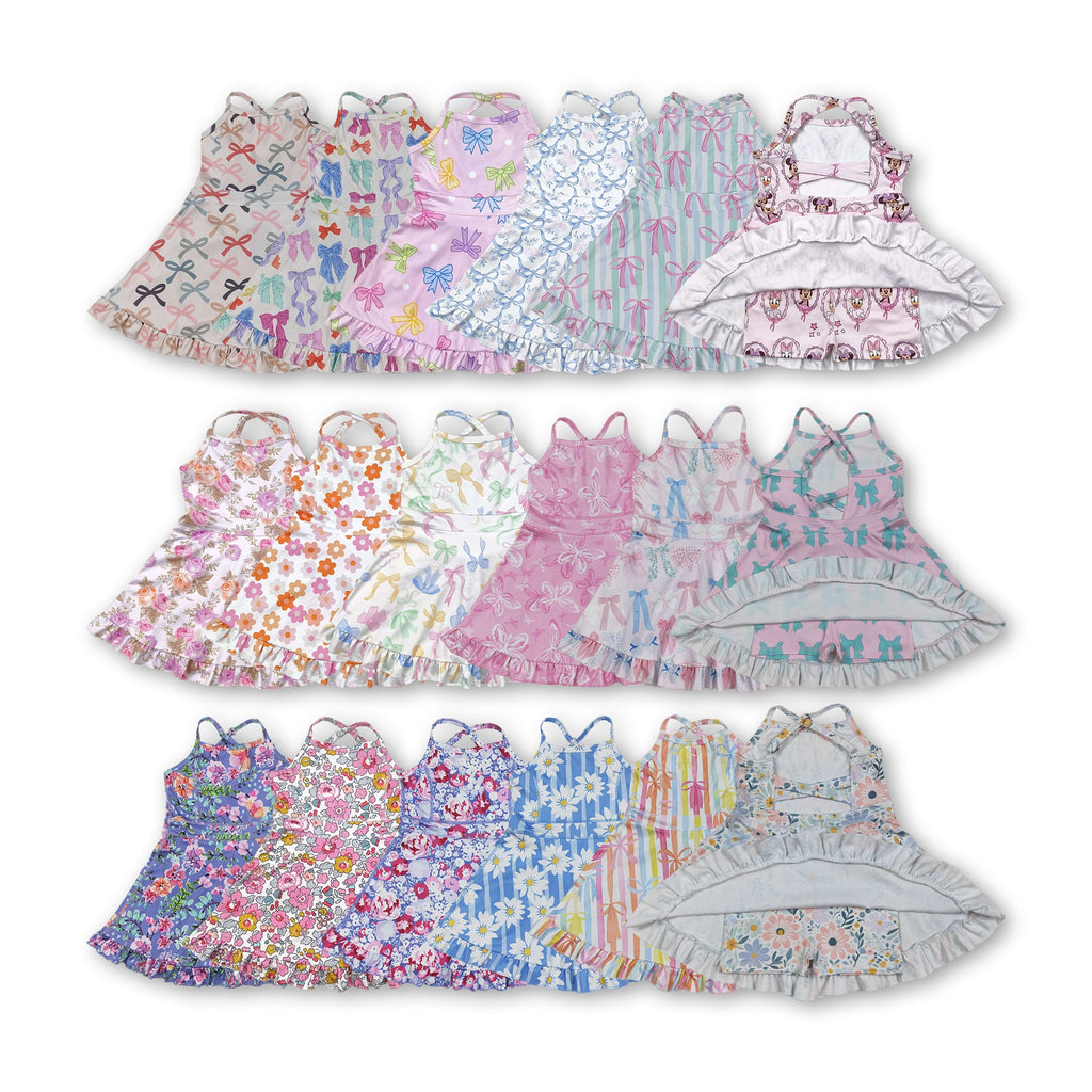 RTS toddler clothes matching clothing floral bow dress kids summer yoga clothing 3