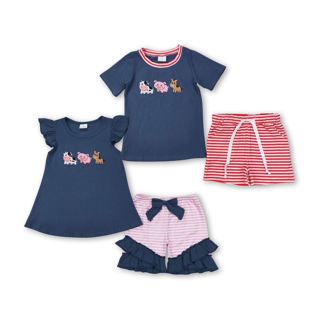 RTS toddler clothes matching pig horse cow farm clothing kids summer shorts set-embroidery