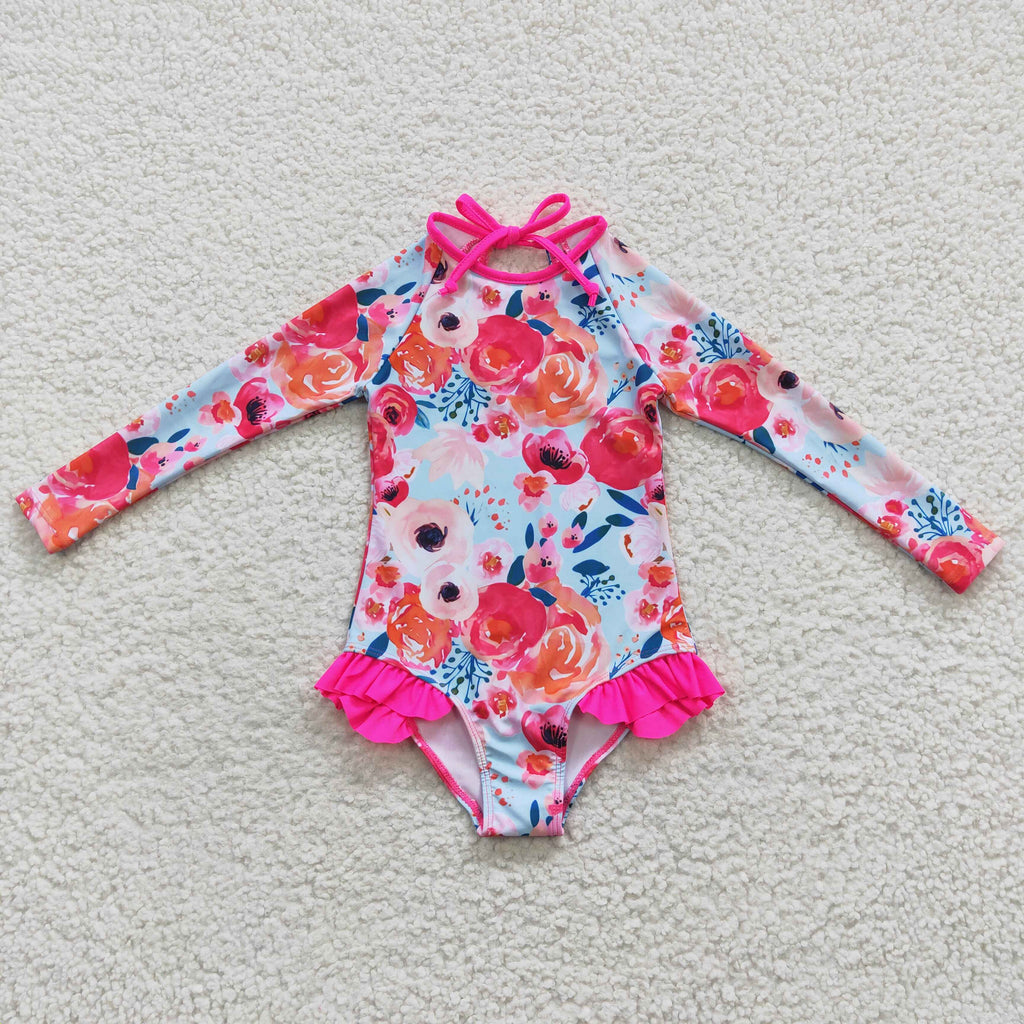 S0083 kids clothes girls floral swimsuit girl summer swimwear