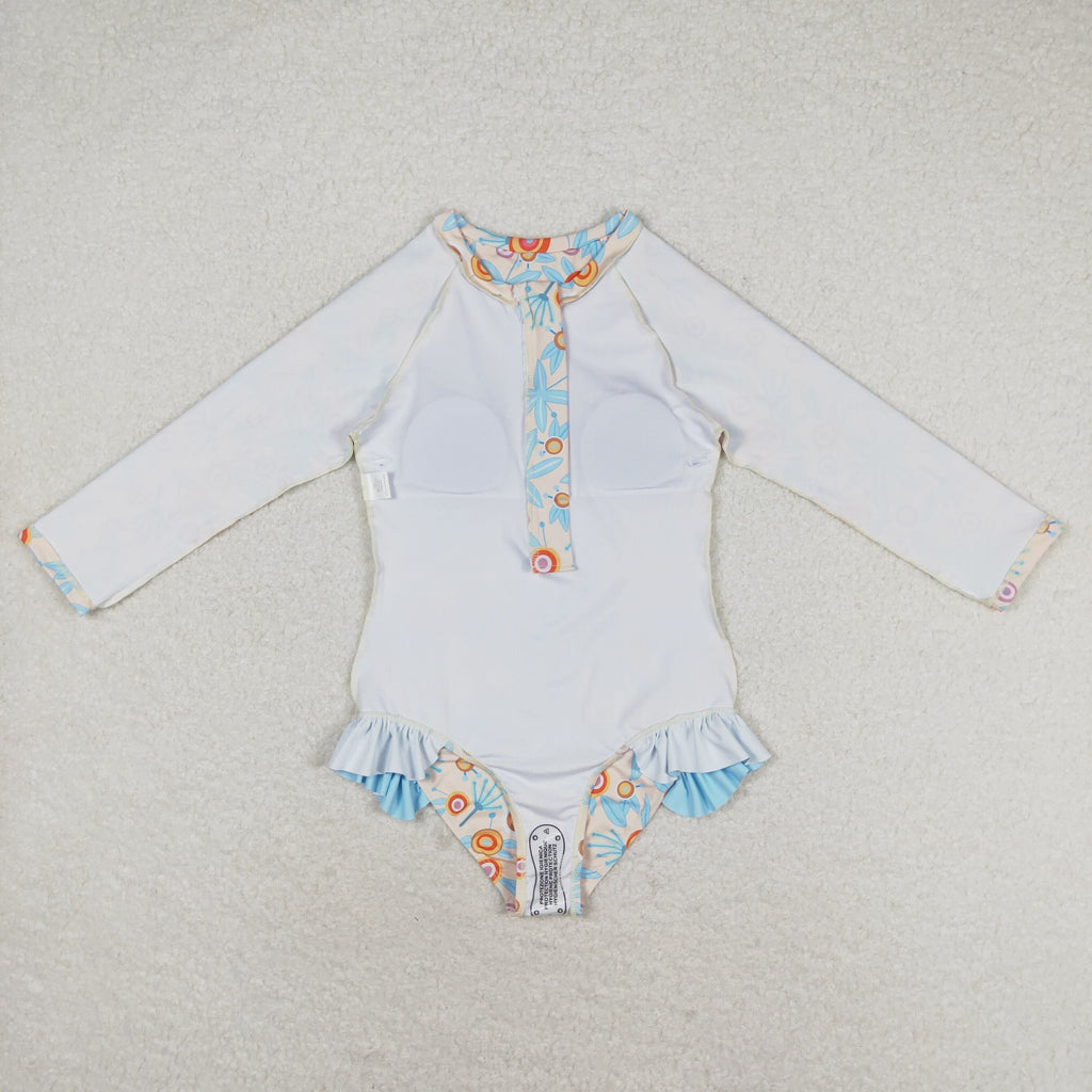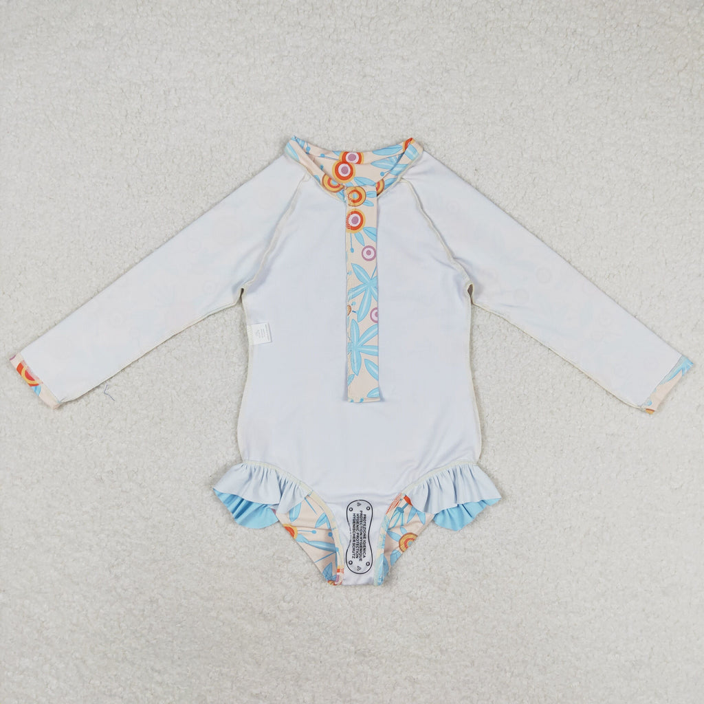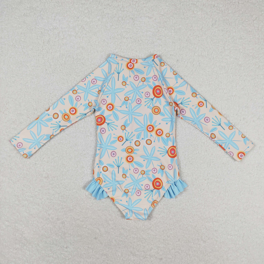 S0242 RTS baby girl clothes blue print girl summer swimsuit