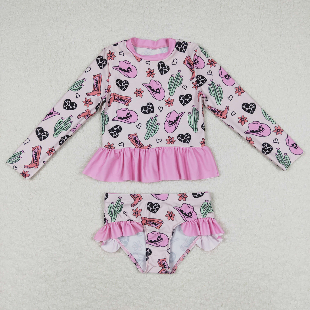 S0262 RTS baby girl clothes cowgirl pink girl summer swimsuit western clothes