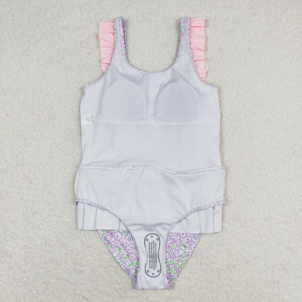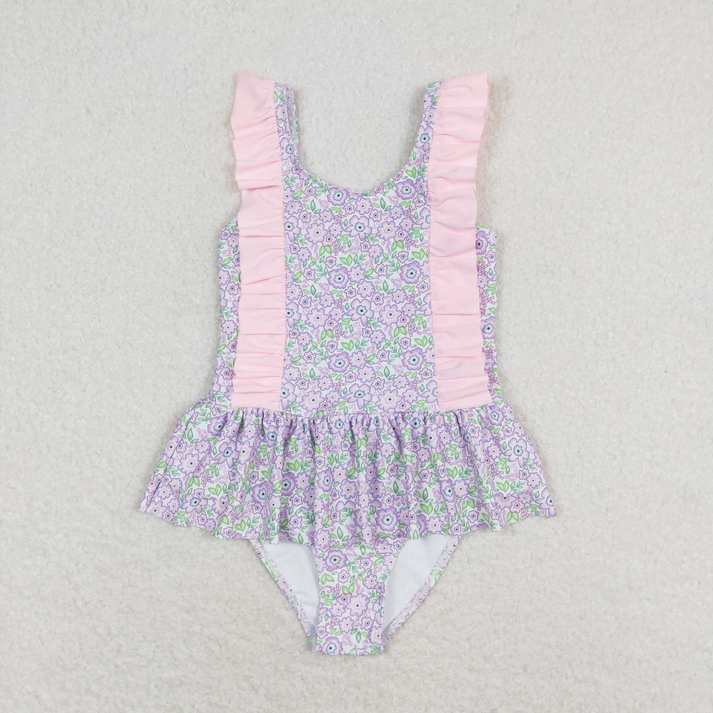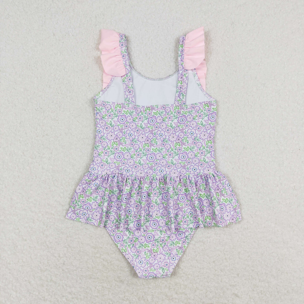 S0331 RTS baby girl clothes floral pink girl summer swimsuit beach wear 1