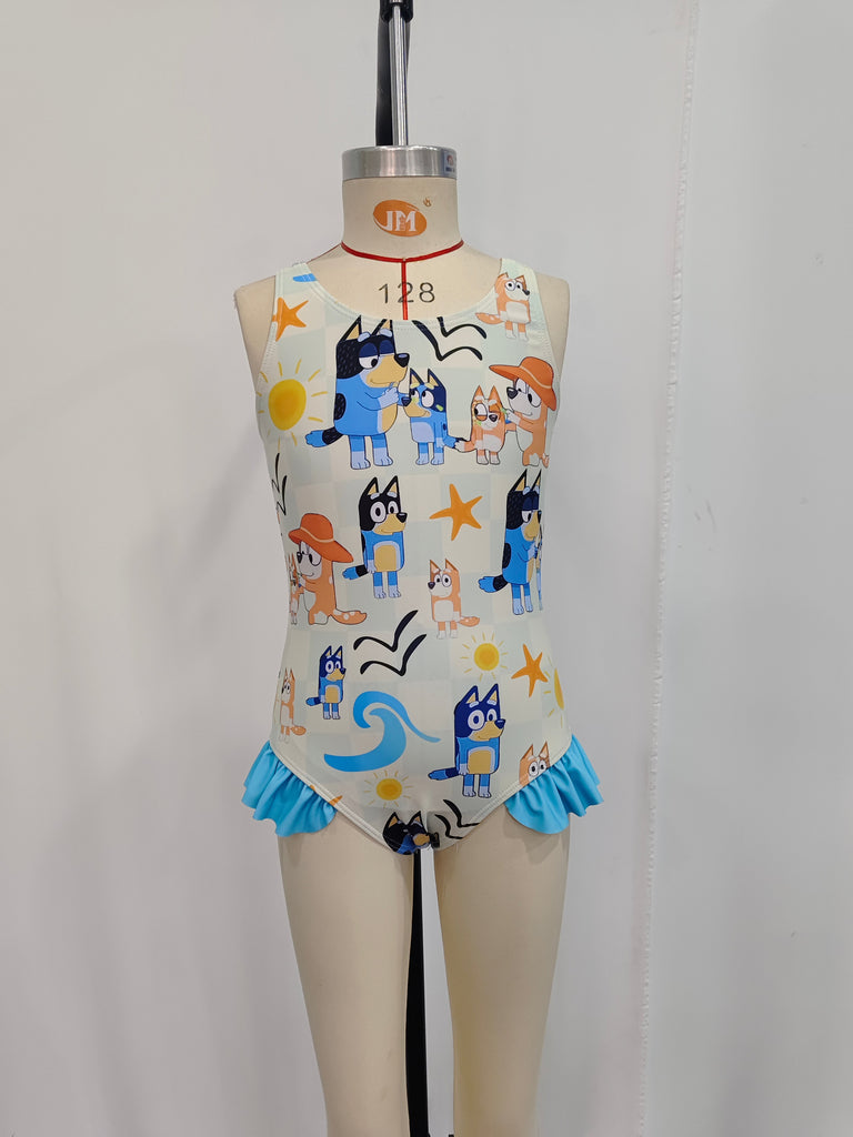S0356 RTS baby girl clothes cartoon dog girl summer swimsuit beach wear 1