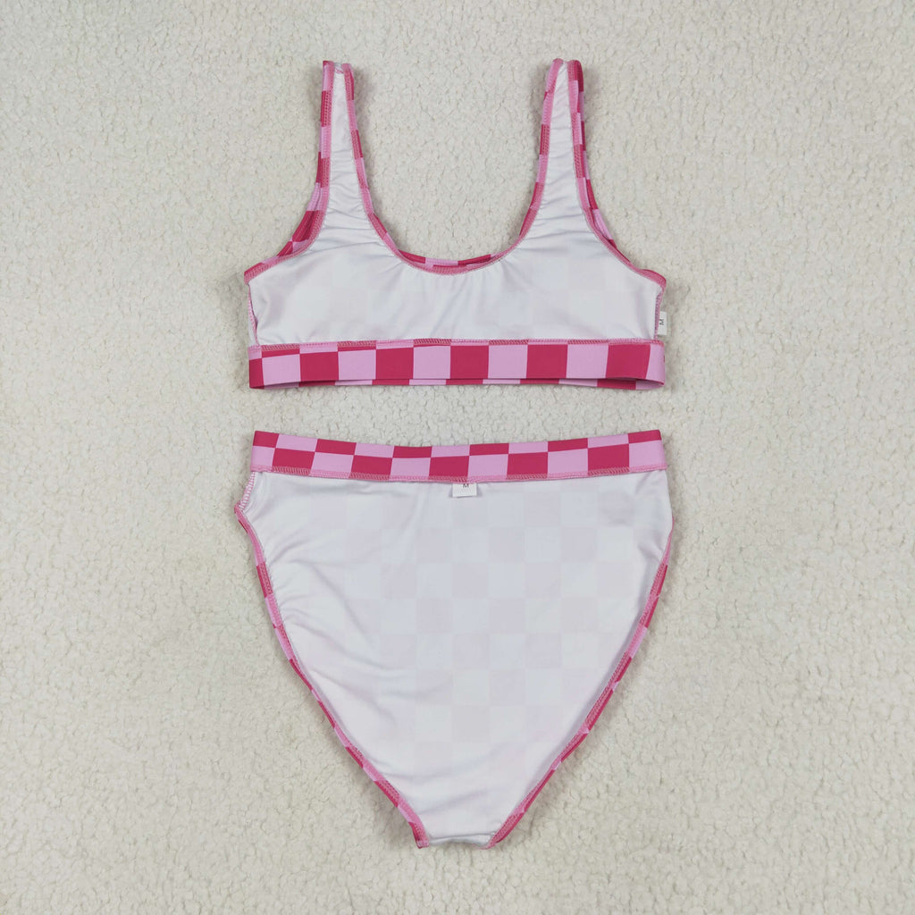 S0559 RTS women clothes pink plaid adult leopard swim suit 2pcs outfit
