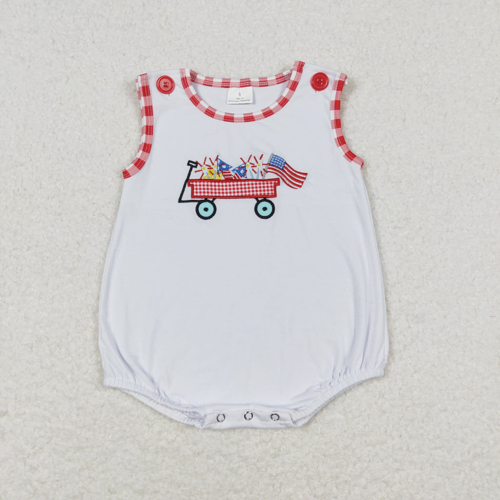 SR1078 RTS baby boy clothes embroidery flag 4th of July patriotic toddler boy summer bubble