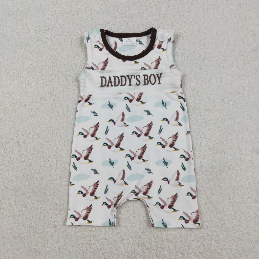 SR3347 RTS baby boy clothes daddy’s boy summer romper smocked mallars smock onesie